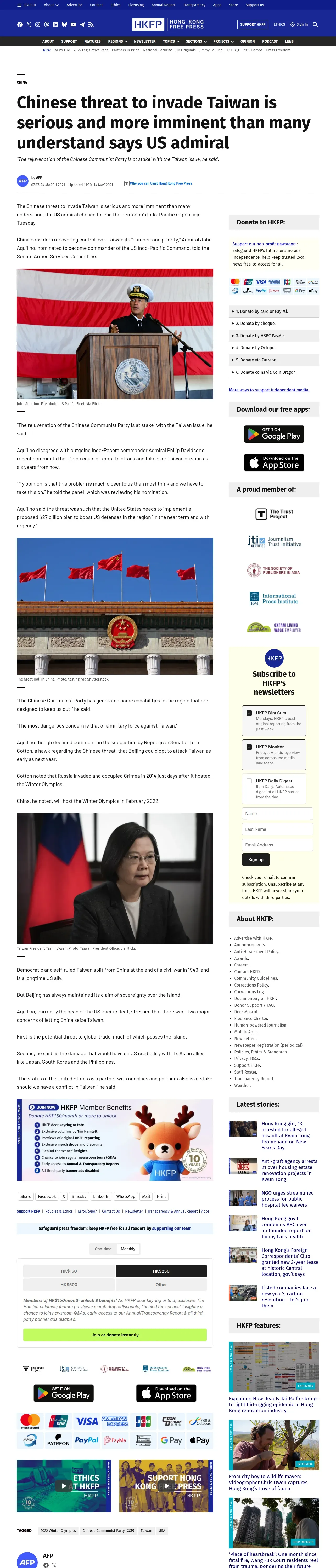 https://hongkongfp.com:443/2021/03/24/chinese-threat-to-invade-taiwan-is-serious-and-more-imminent-than-many-understand-says-us-admiral/