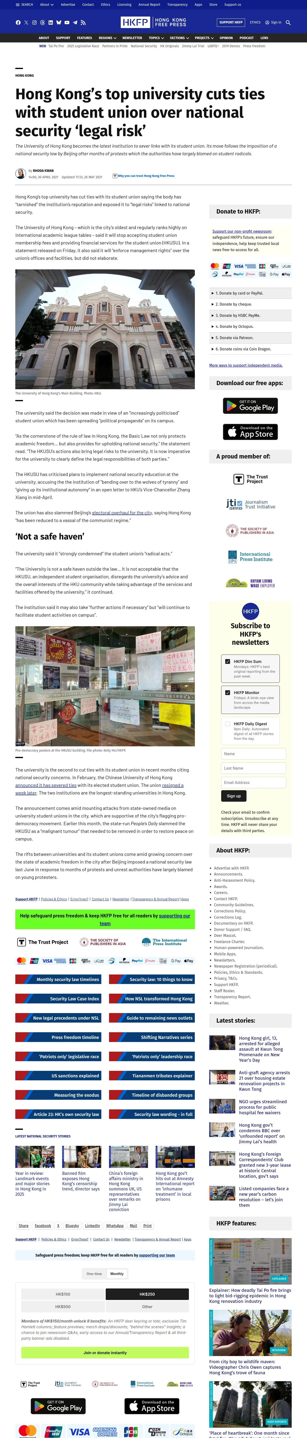 https://hongkongfp.com:443/2021/04/30/hong-kongs-top-university-cuts-ties-with-student-union-over-national-security-legal-risk/