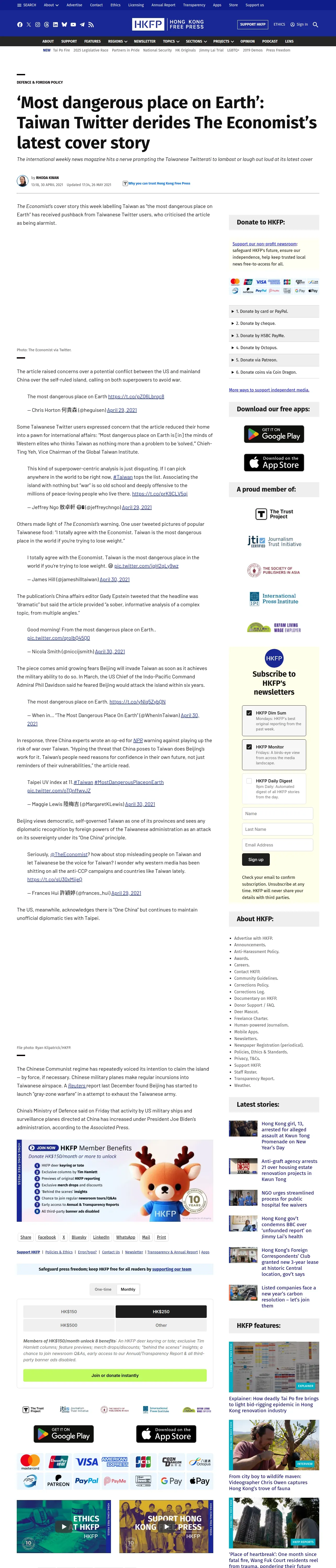 https://hongkongfp.com:443/2021/04/30/most-dangerous-place-on-earth-taiwan-twitter-derides-the-economists-latest-cover-story/