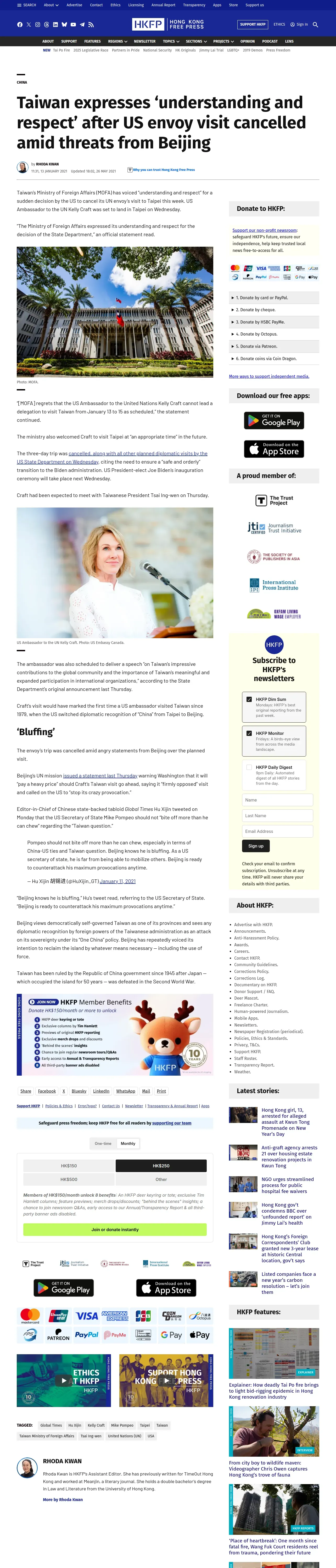 https://hongkongfp.com:443/2021/01/13/taiwan-expresses-understanding-and-respect-after-us-envoy-visit-cancelled-amid-threats-from-beijing/