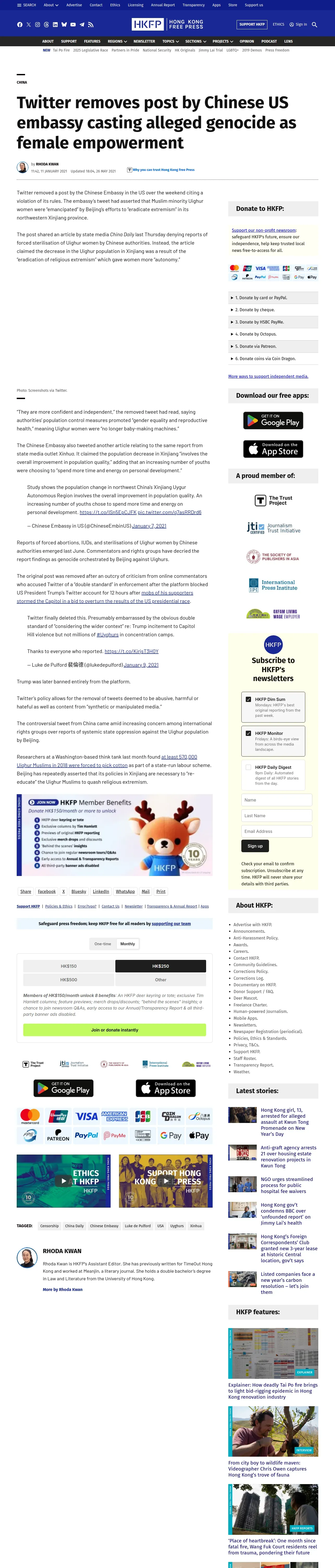 取得元URL: https://hongkongfp.com:443/2021/01/11/twitter-removes-post-by-chinese-us-embassy-casting-alleged-genocide-as-female-empowerment/