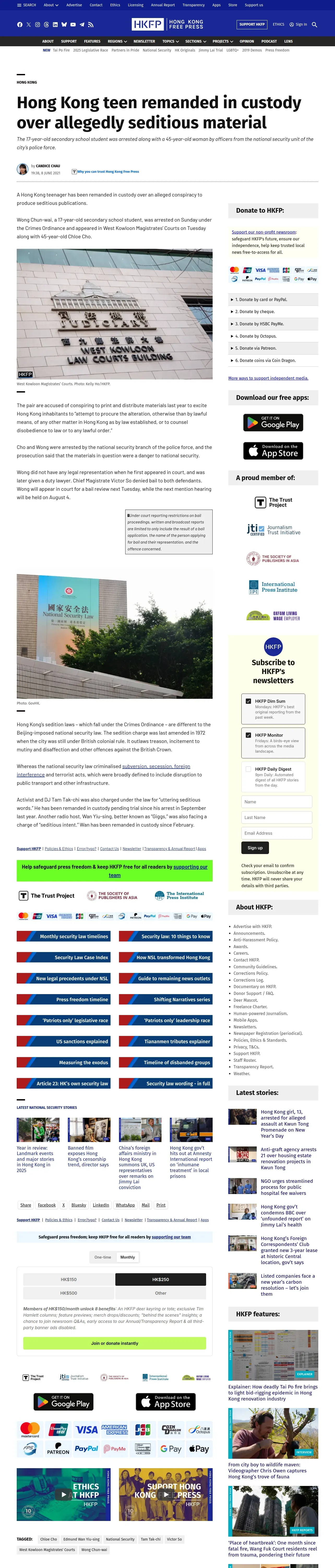https://hongkongfp.com:443/2021/06/08/hong-kong-teen-remanded-in-custody-over-allegedly-seditious-material/
