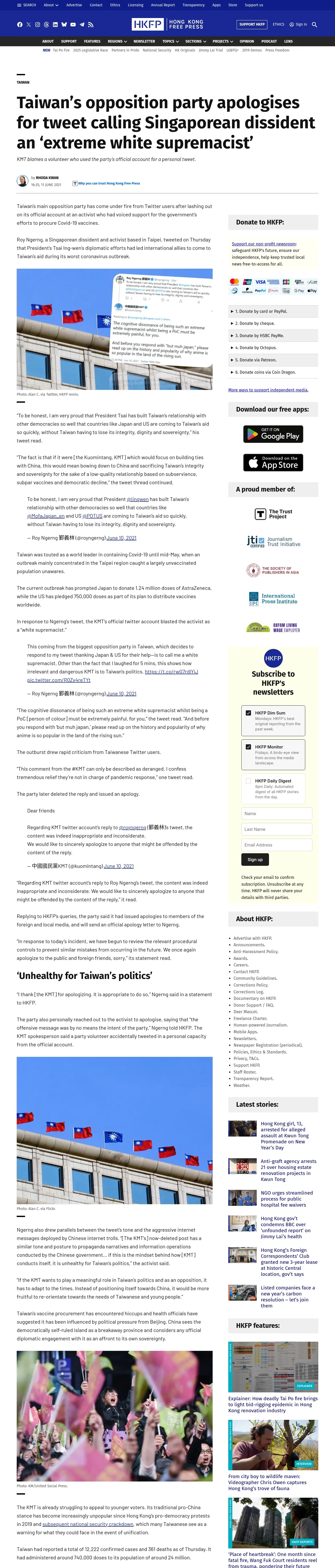 https://hongkongfp.com:443/2021/06/11/taiwans-opposition-party-apologises-for-tweet-calling-singaporean-dissident-an-extreme-white-supremacist/