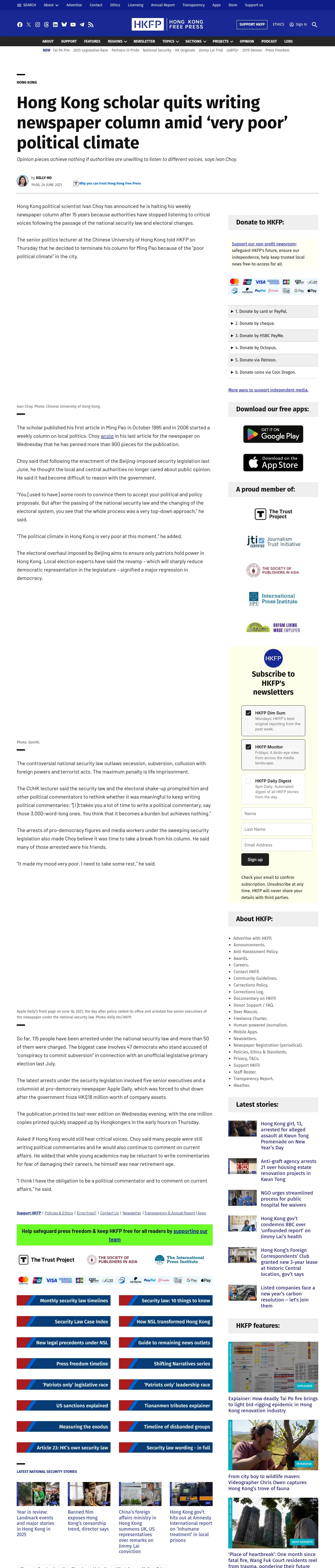 取得元URL: https://hongkongfp.com:443/2021/06/24/hong-kong-scholar-quits-writing-newspaper-column-amid-very-poor-political-climate/