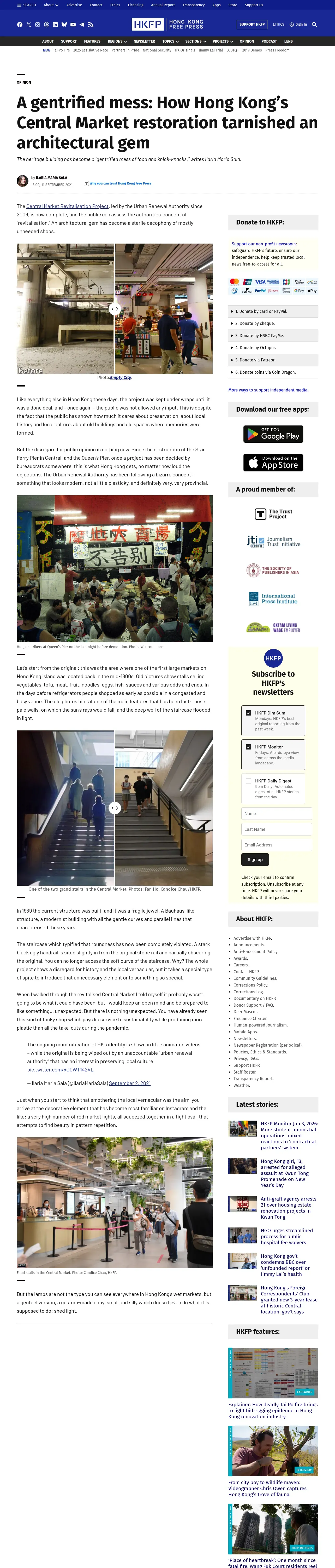 取得元URL: https://hongkongfp.com:443/2021/09/11/a-gentrified-mess-how-hong-kongs-central-market-restoration-tarnished-an-architectural-gem/