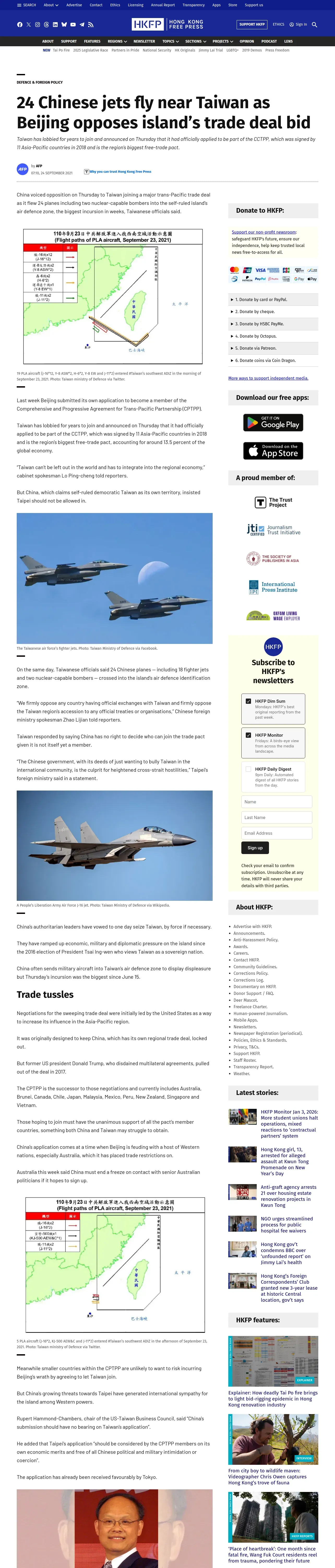 https://hongkongfp.com:443/2021/09/24/24-chinese-jets-fly-near-taiwan-as-beijing-opposes-islands-trade-deal-bid/