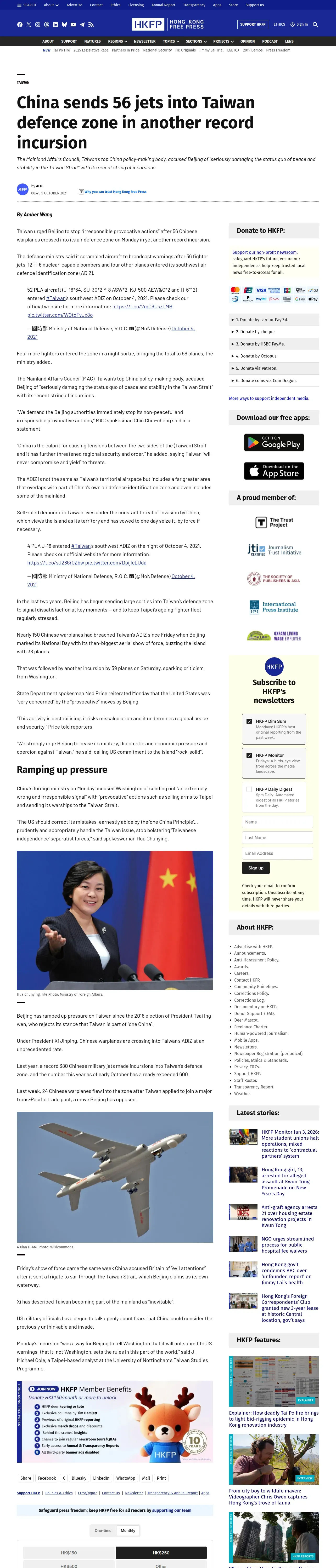https://hongkongfp.com:443/2021/10/05/china-sends-56-jets-into-taiwan-defence-zone-in-another-record-incursion/