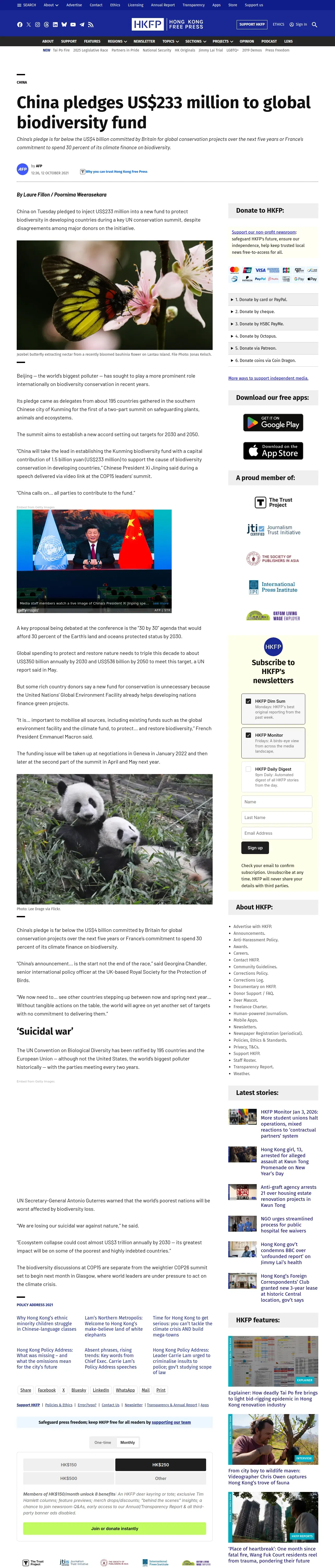 https://hongkongfp.com:443/2021/10/12/china-pledges-us233-million-to-global-biodiversity-fund/