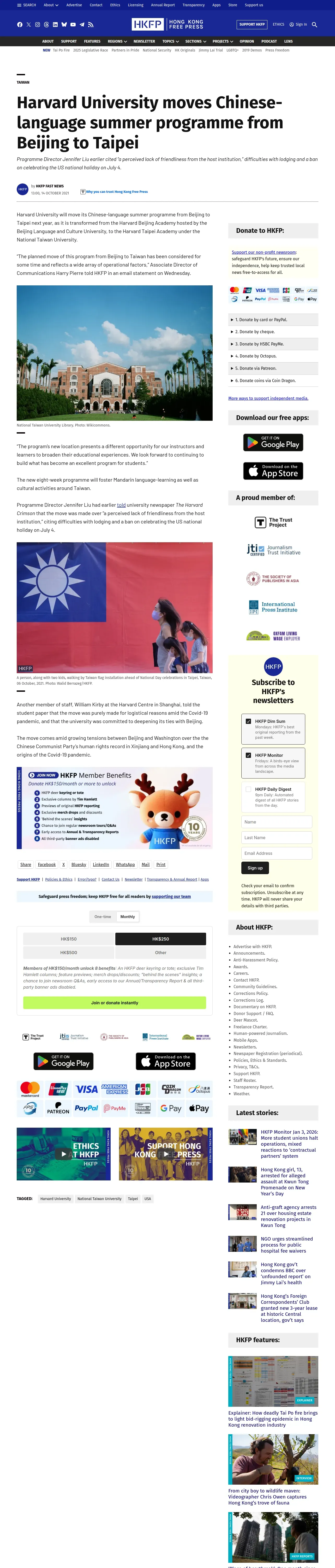 https://hongkongfp.com:443/2021/10/14/harvard-university-moves-chinese-language-summer-programme-from-beijing-to-taipei/