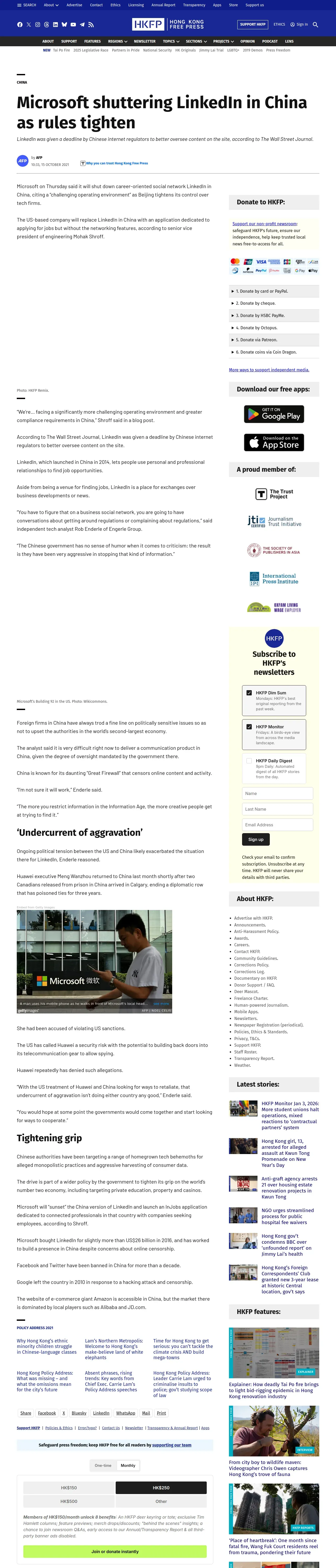 https://hongkongfp.com:443/2021/10/15/microsoft-shuttering-linkedin-in-china-as-rules-tighten/