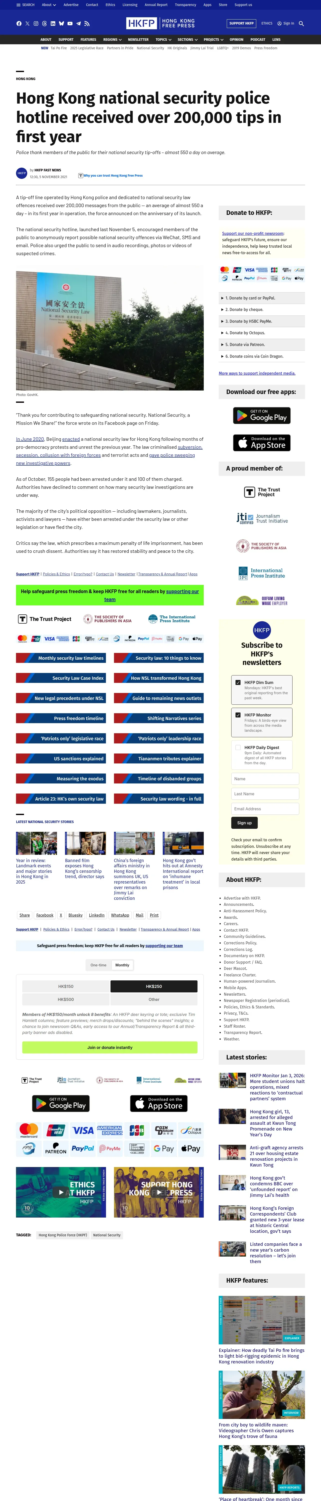 https://hongkongfp.com:443/2021/11/05/hong-kong-national-security-police-hotline-received-over-200000-tips-in-first-year/
