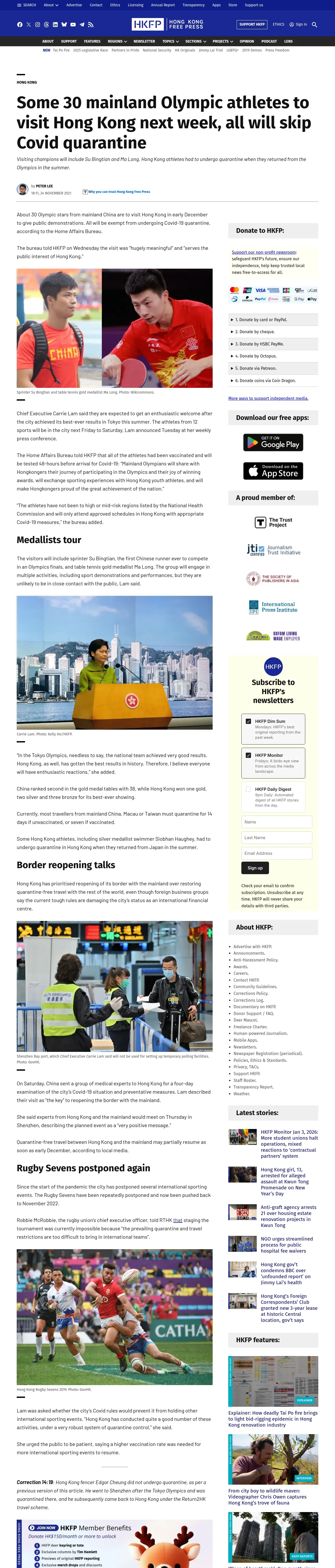 取得元URL: https://hongkongfp.com:443/2021/11/24/some-30-mainland-olympic-athletes-to-visit-hong-kong-next-week-all-will-skip-covid-quarantine/