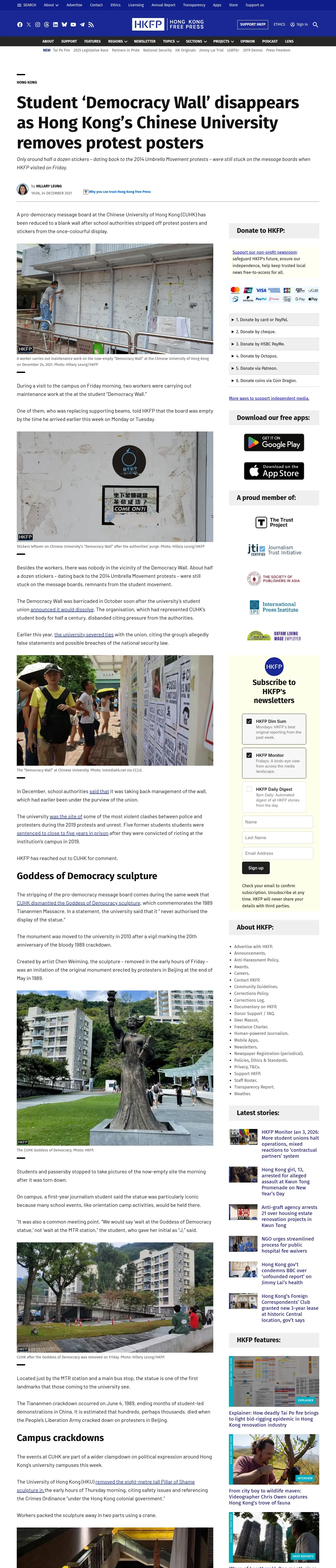 https://hongkongfp.com:443/2021/12/24/student-democracy-wall-disappears-as-hong-kongs-chinese-university-removes-protest-posters/