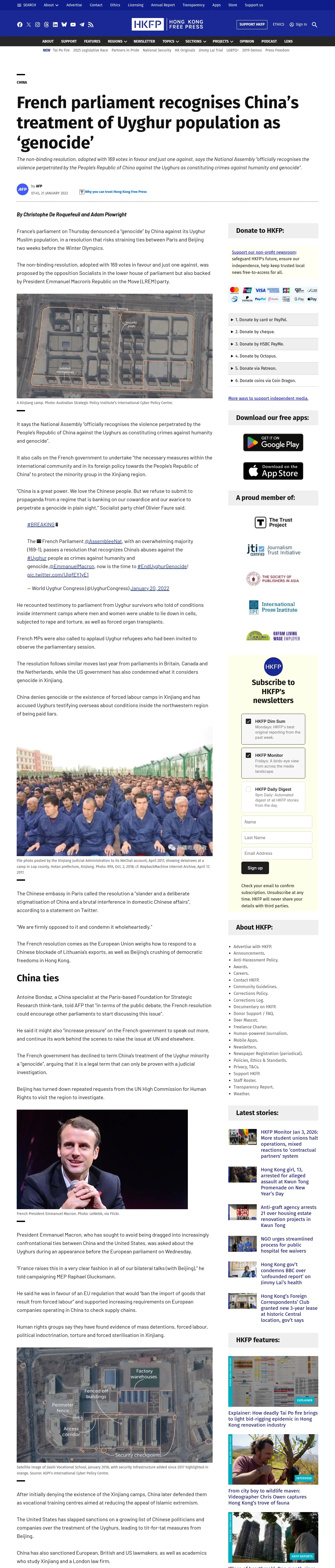 取得元URL: https://hongkongfp.com:443/2022/01/21/french-parliament-recognises-chinas-treatment-of-uyghur-population-as-genocide/