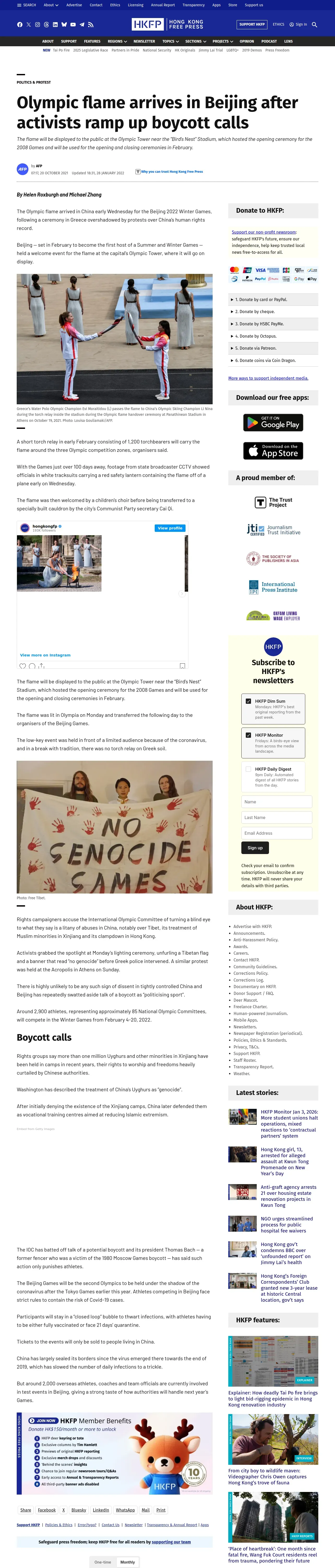 取得元URL: https://hongkongfp.com:443/2021/10/20/olympic-flame-arrives-in-beijing-after-activists-ramp-up-boycott-calls/