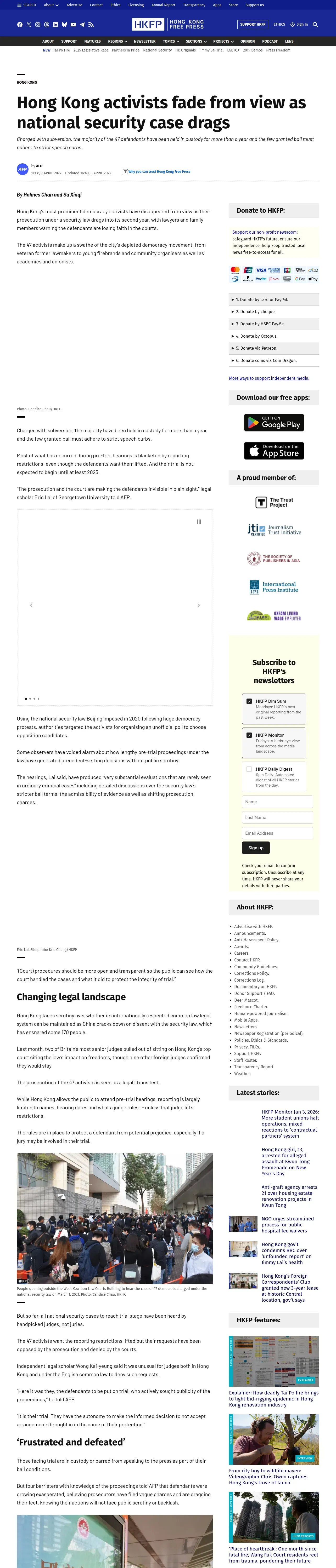 取得元URL: https://hongkongfp.com:443/2022/04/07/hong-kong-activists-fade-from-view-as-national-security-case-drags/