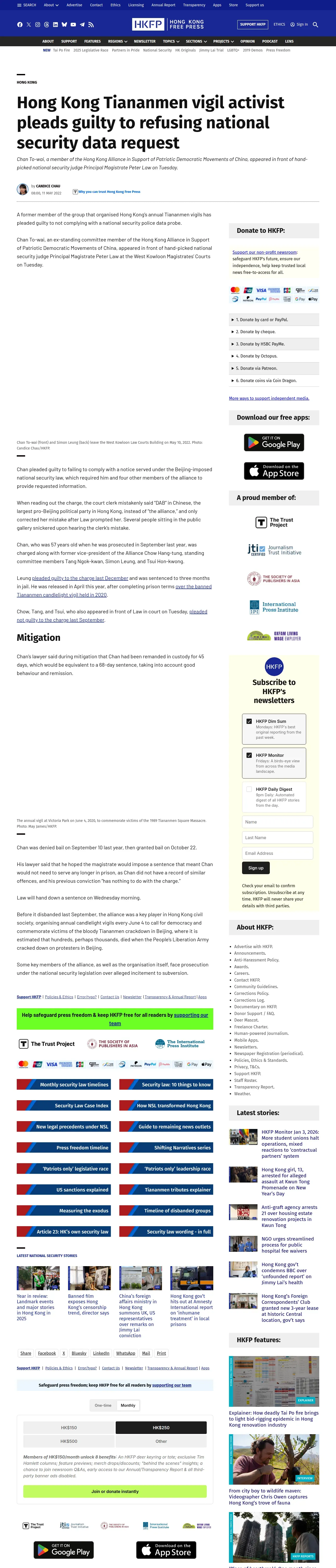 https://hongkongfp.com:443/2022/05/11/hong-kong-tiananmen-vigil-activist-pleads-guilty-to-refusing-national-security-data-request/