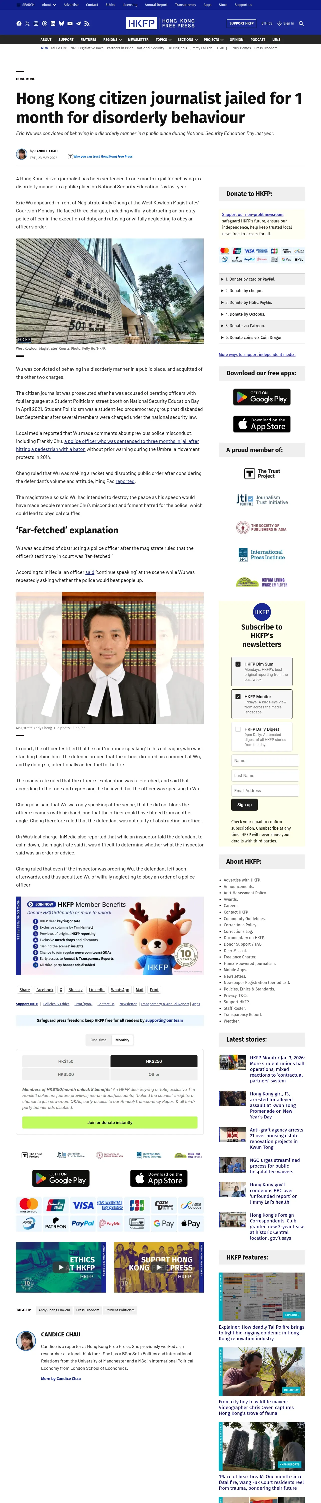 https://hongkongfp.com:443/2022/05/23/hong-kong-citizen-journalist-jailed-for-1-month-for-disorderly-behaviour/