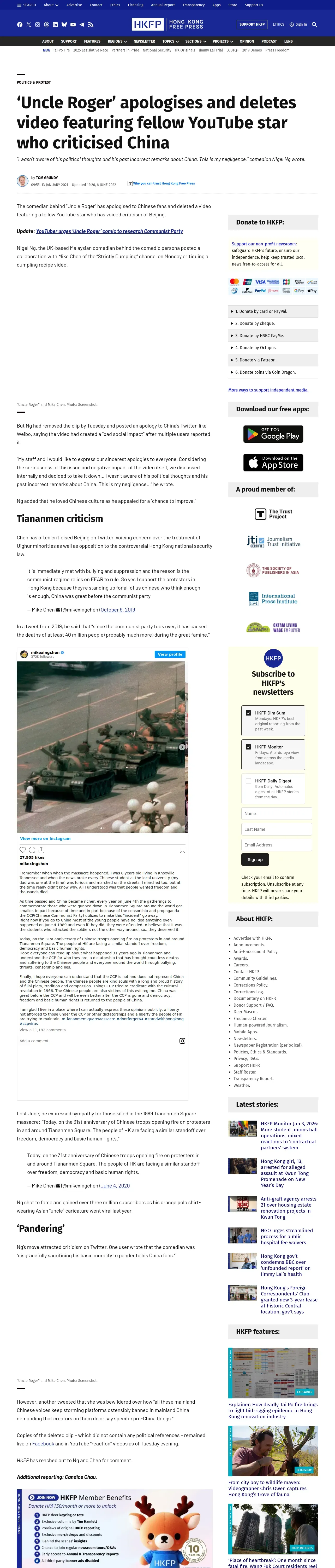 https://hongkongfp.com:443/2021/01/13/uncle-roger-apologises-and-deletes-video-featuring-fellow-youtube-star-who-criticised-china/