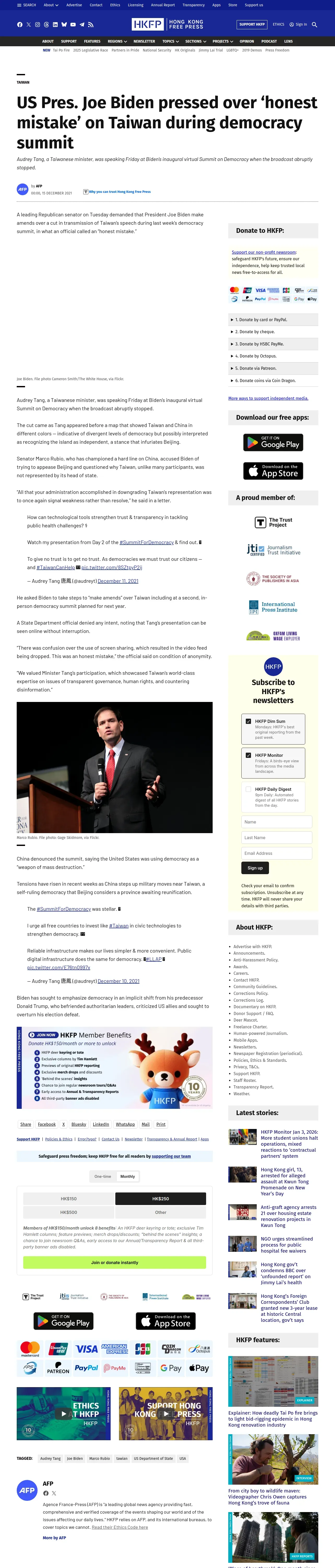 https://hongkongfp.com:443/2021/12/15/us-pres-joe-biden-pressed-over-honest-mistake-on-taiwan-during-democracy-summit/
