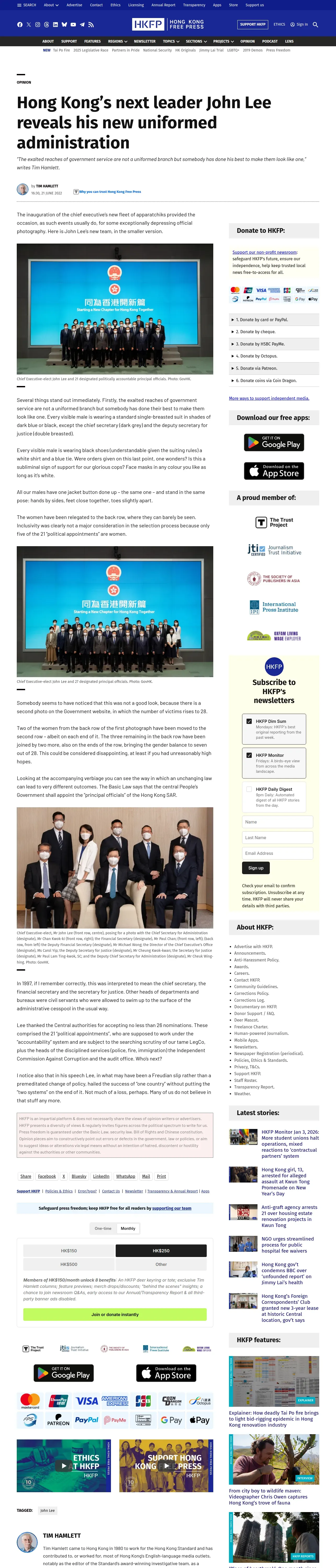 https://hongkongfp.com:443/2022/06/21/hong-kongs-next-leader-john-lee-revealed-his-new-administration-complete-with-nice-uniforms/