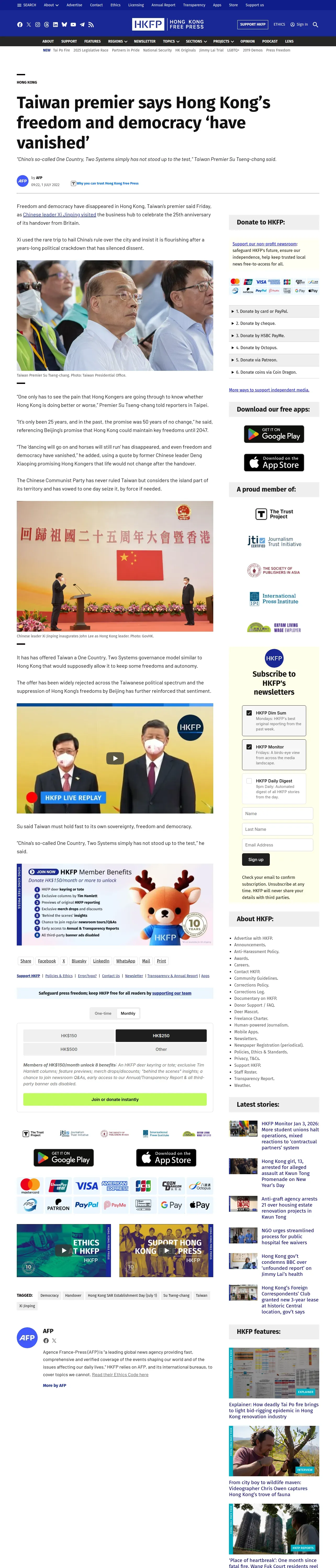 取得元URL: https://hongkongfp.com:443/2022/07/01/taiwan-premier-says-hong-kongs-freedom-and-democracy-have-vanished/