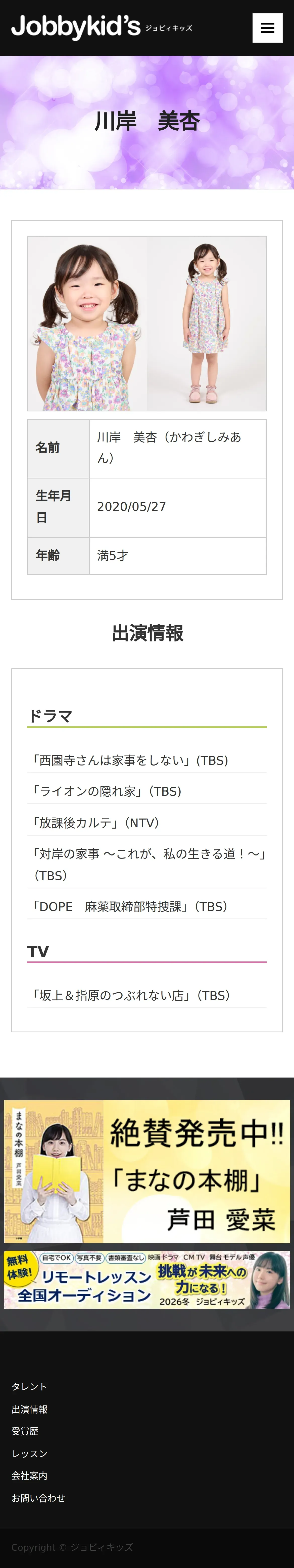 https://www.jobbykids.jp:443/talent/%E5%B7%9D%E5%B2%B8%E7%BE%8E%E6%9D%8F/