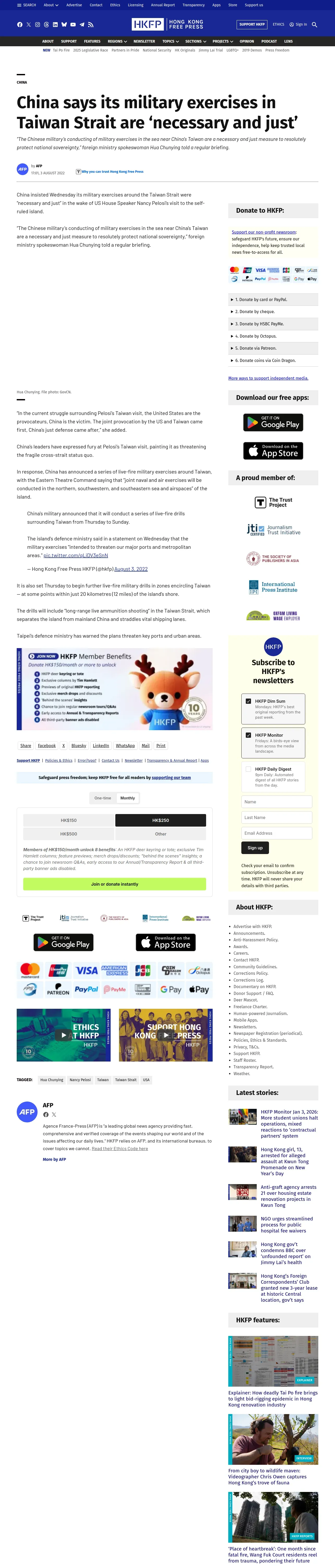 取得元URL: https://hongkongfp.com:443/2022/08/03/china-says-its-military-exercises-in-taiwan-strait-are-necessary-and-just/