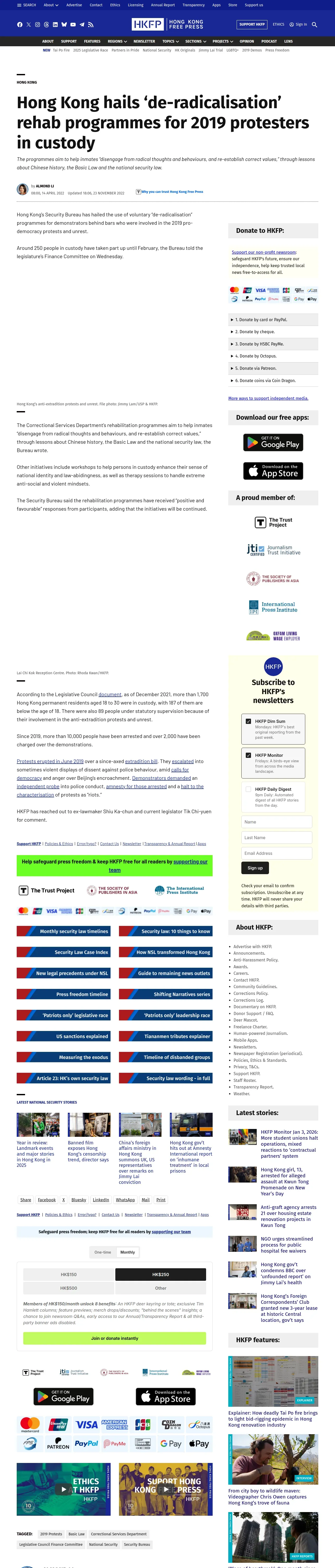 https://hongkongfp.com:443/2022/04/14/hong-kong-hails-de-radicalisation-rehab-programmes-for-2019-protesters-in-custody/
