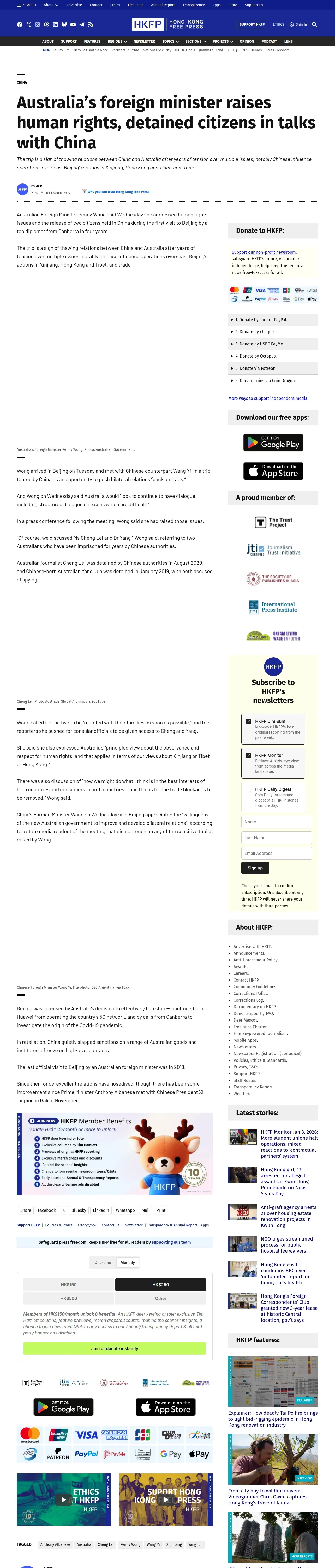 取得元URL: https://hongkongfp.com:443/2022/12/21/australias-foreign-minister-raises-human-rights-detained-citizens-in-talks-with-china/