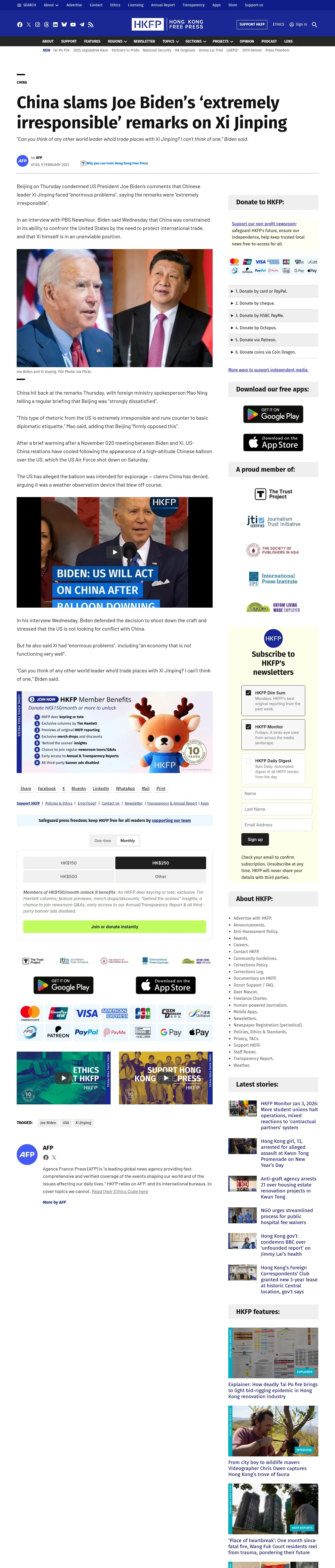 https://hongkongfp.com:443/2023/02/09/china-slams-joe-bidens-extremely-irresponsible-remarks-on-xi-jinping/