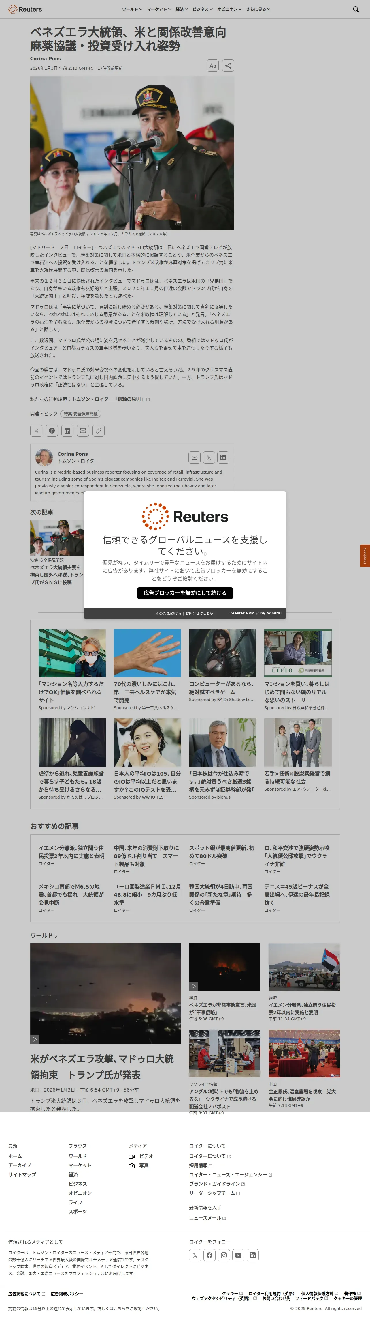 取得元URL: https://jp.reuters.com:443/world/security/ATEVWZGFR5NL3FW3HJP5QQ4X7Q-2026-01-02/