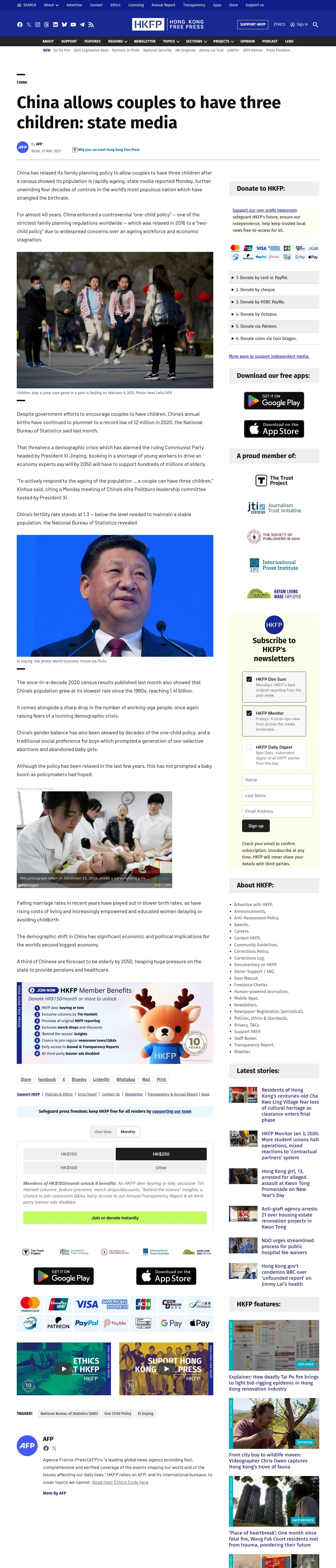 https://hongkongfp.com:443/2021/05/31/china-allows-couples-to-have-three-children-state-media/