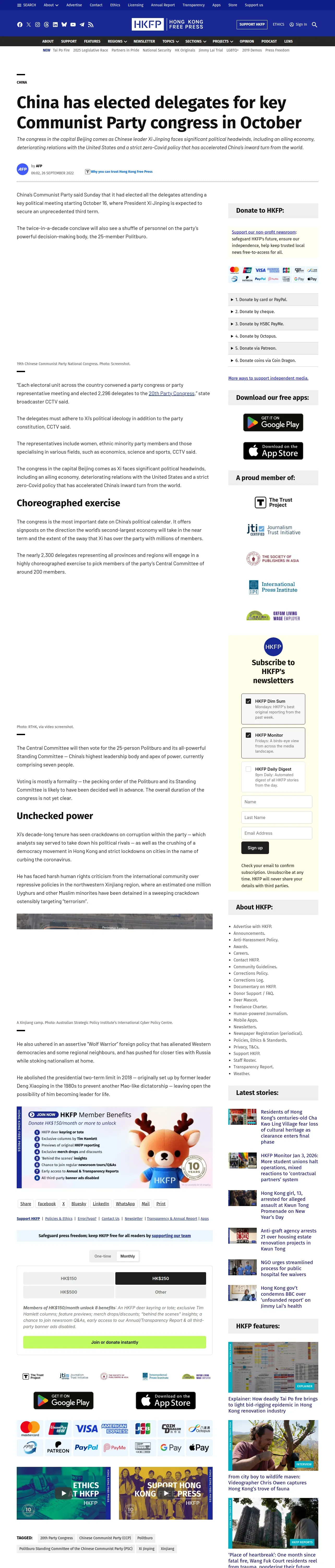 https://hongkongfp.com:443/2022/09/26/china-has-elected-delegates-for-key-communist-party-congress-in-october/