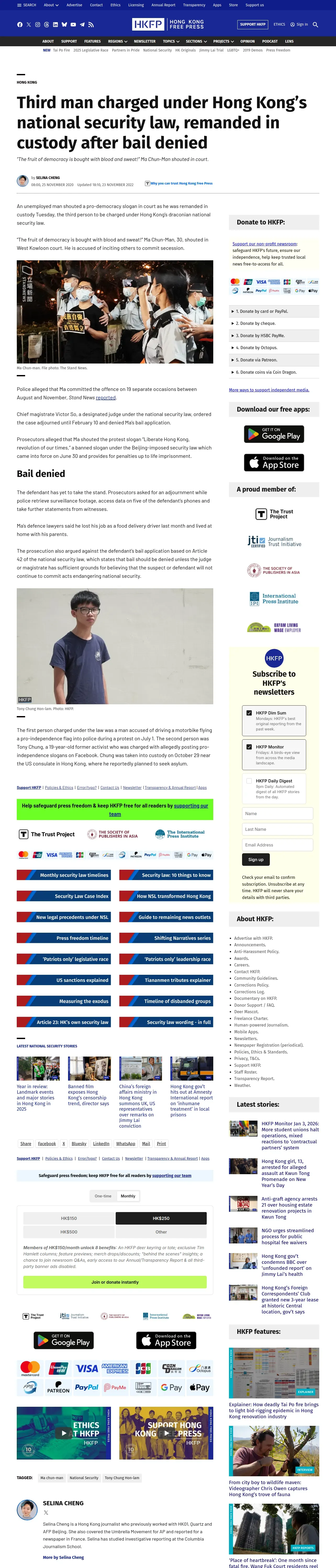 https://hongkongfp.com:443/2020/11/25/third-man-charged-under-hong-kongs-national-security-law-remanded-in-custody-after-bail-denied/