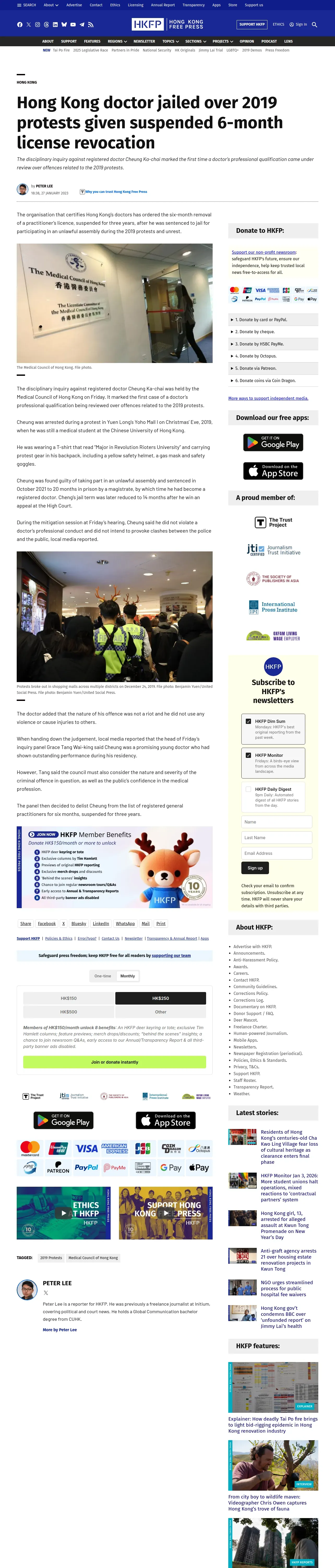 https://hongkongfp.com:443/2023/01/27/hong-kong-doctor-convicted-over-2019-protests-given-suspended-6-month-license-revocation/
