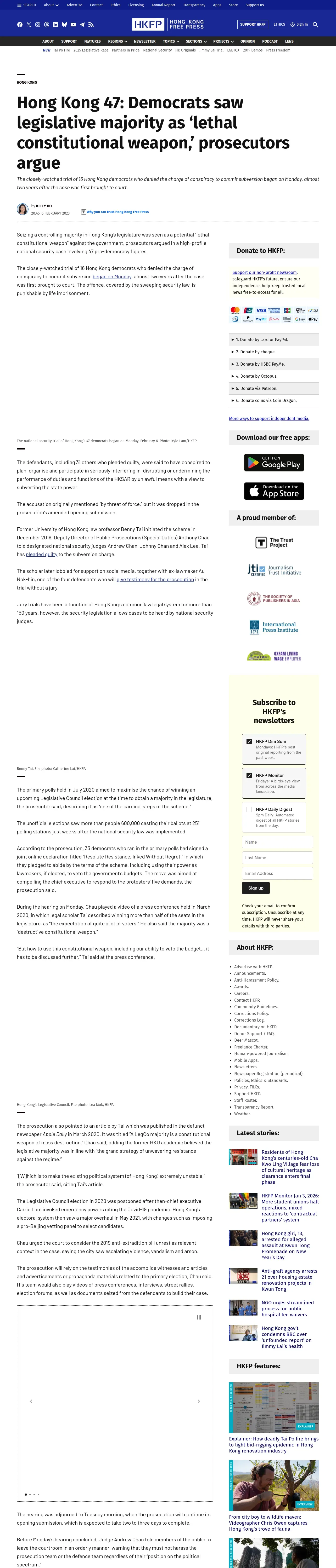https://hongkongfp.com:443/2023/02/06/hong-kong-47-democrats-saw-legislative-majority-as-lethal-constitutional-weapon-prosecutors-argue/