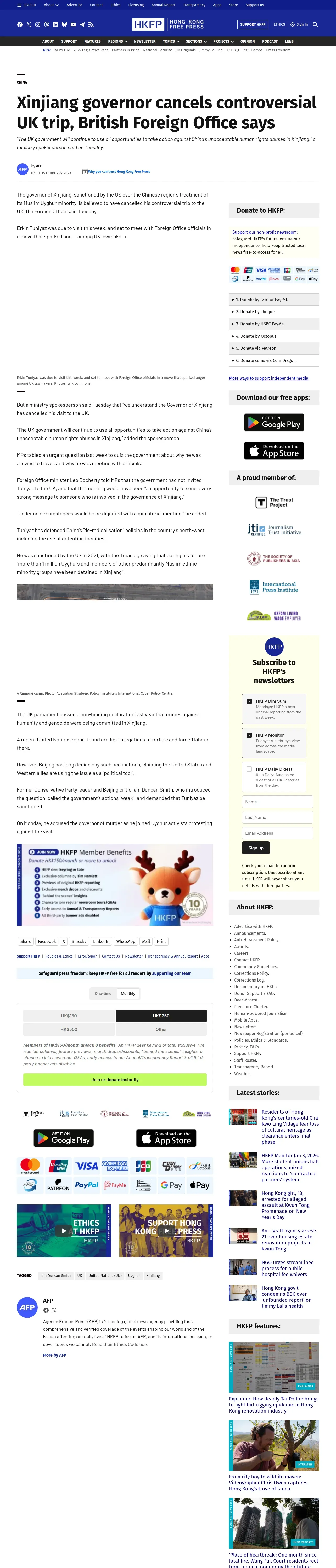 https://hongkongfp.com:443/2023/02/15/xinjiang-governor-cancels-controversial-uk-trip-british-foreign-office-says/