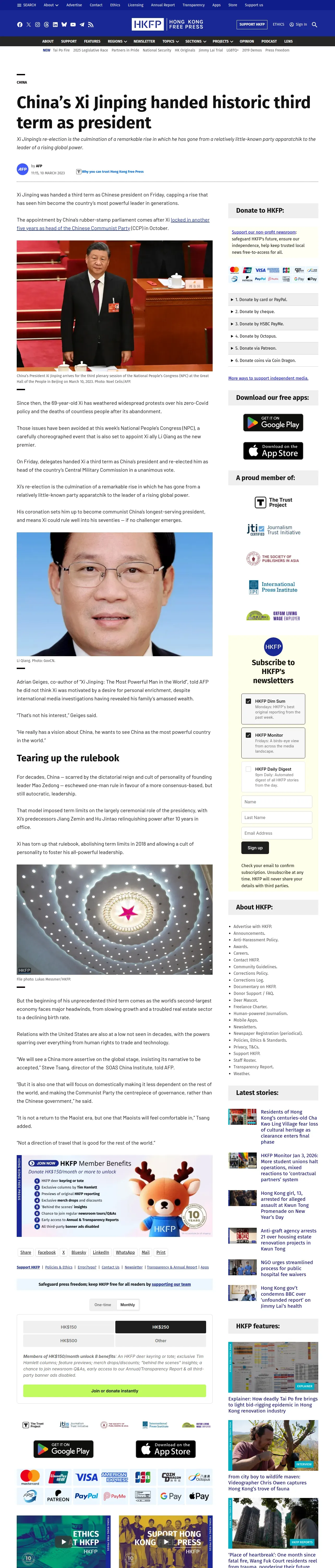 https://hongkongfp.com:443/2023/03/10/chinas-xi-jinping-handed-historic-third-term-as-president/