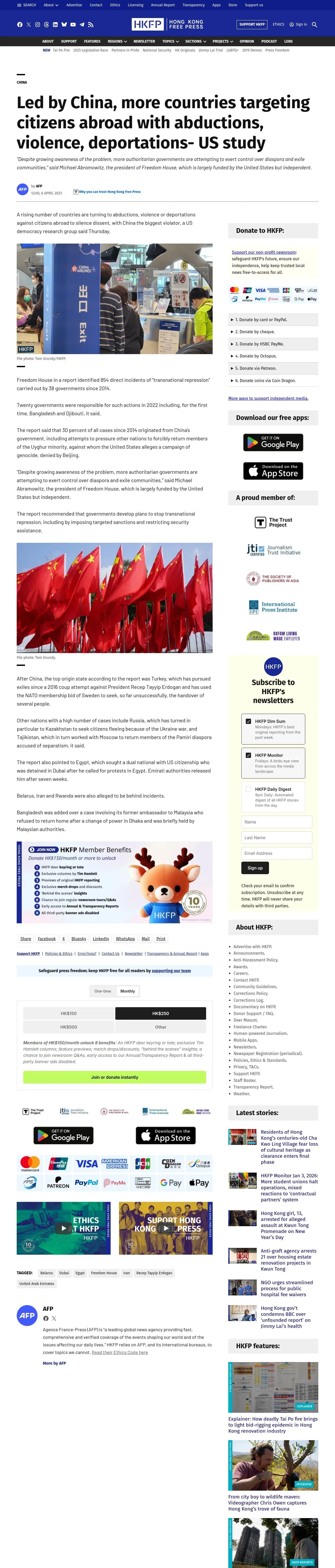 https://hongkongfp.com:443/2023/04/06/led-by-china-more-countries-targeting-citizens-abroad-with-abductions-violence-deportations-us-study/