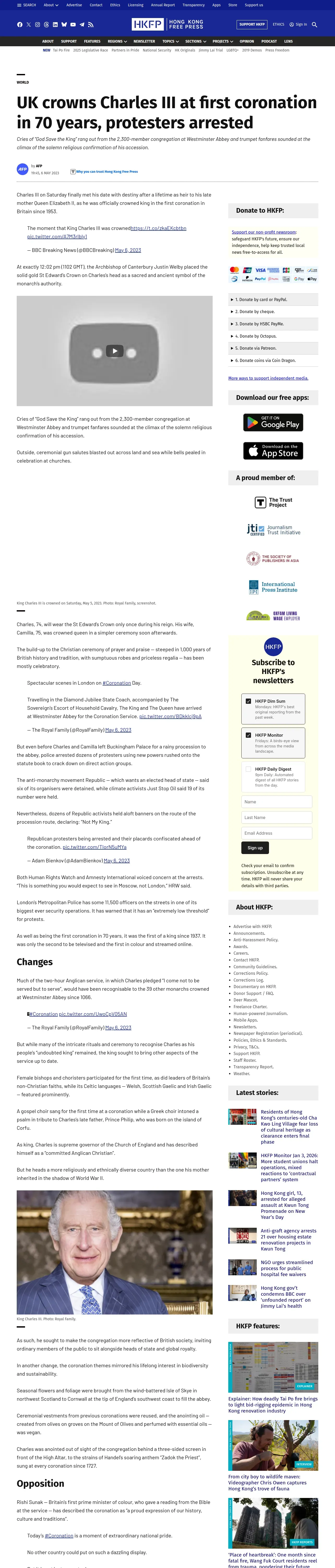 https://hongkongfp.com:443/2023/05/06/uk-crowns-charles-iii-at-first-coronation-in-70-years-protesters-arrested/