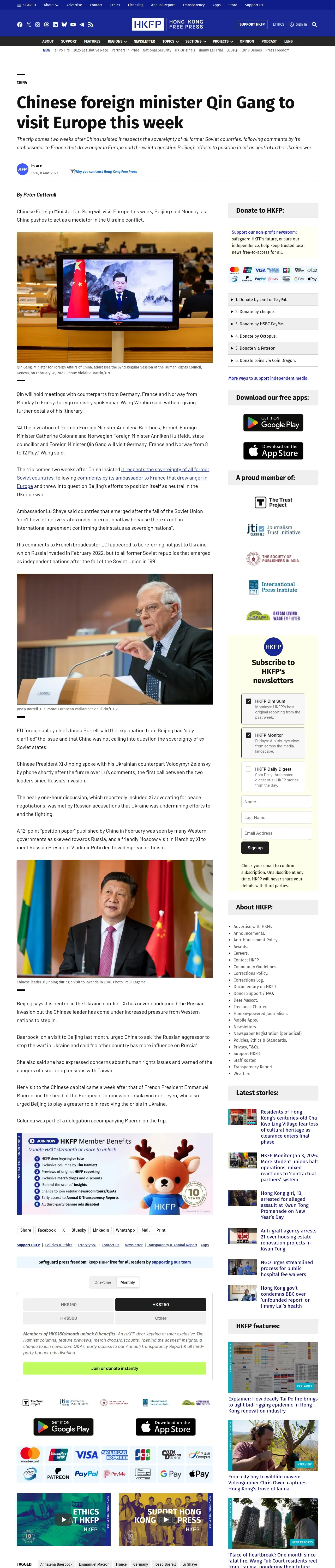 https://hongkongfp.com:443/2023/05/08/chinese-foreign-minister-qin-gang-to-visit-europe-this-week/