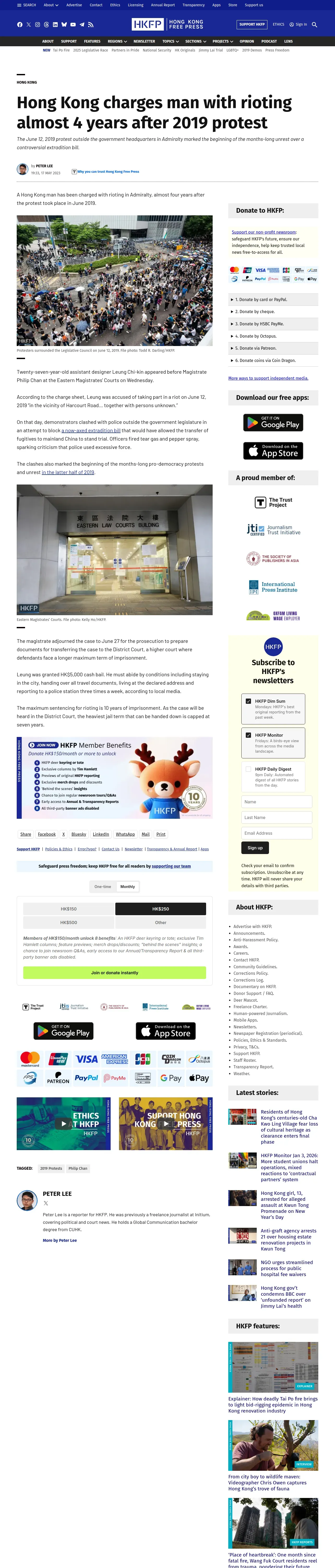 https://hongkongfp.com:443/2023/05/17/hong-kong-charges-man-with-rioting-almost-4-years-after-2019-protest/