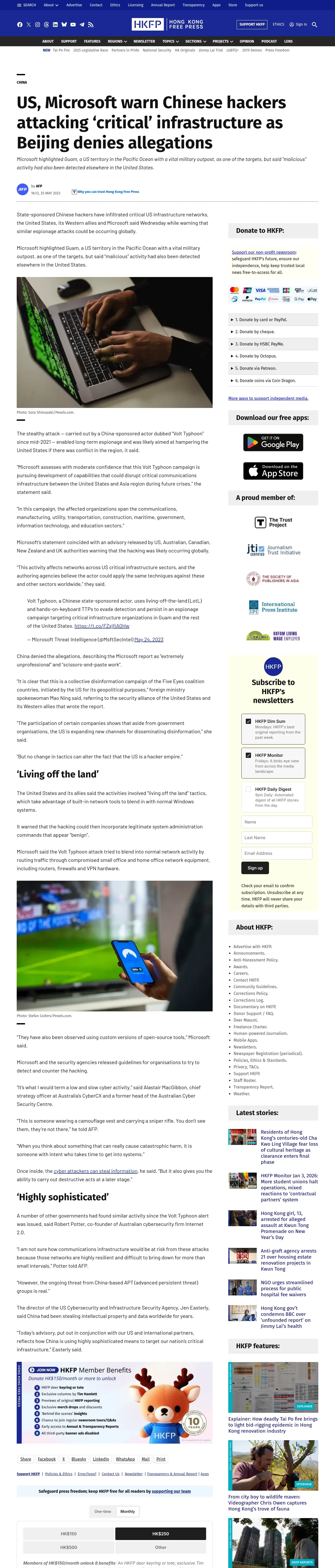 https://hongkongfp.com:443/2023/05/25/us-microsoft-warn-chinese-hackers-attacking-critical-infrastructure-as-beijing-denies-allegations/