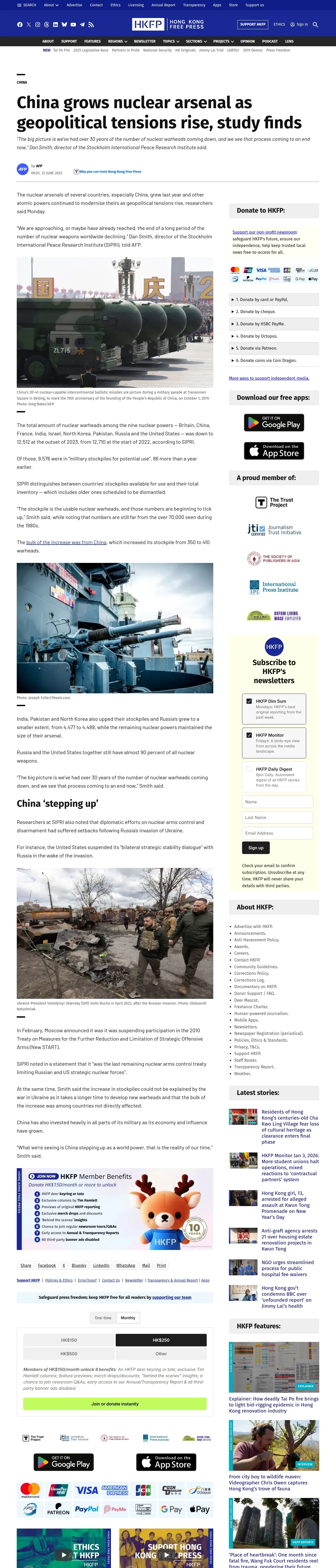 https://hongkongfp.com:443/2023/06/12/china-grows-nuclear-arsenal-as-geopolitical-tensions-rise-study-finds/