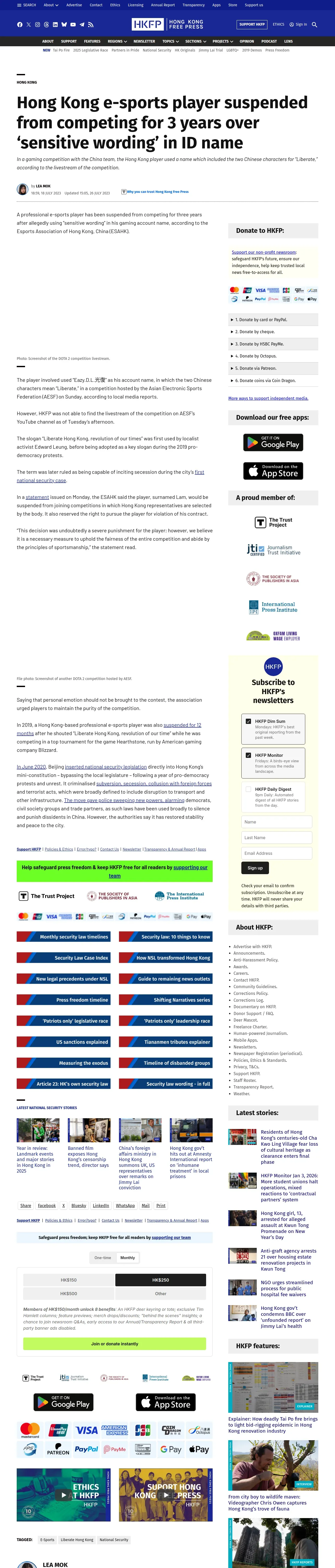 https://hongkongfp.com:443/2023/07/18/hong-kong-e-sport-player-suspended-from-competing-for-3-years-over-sensitive-wording-in-id-name/