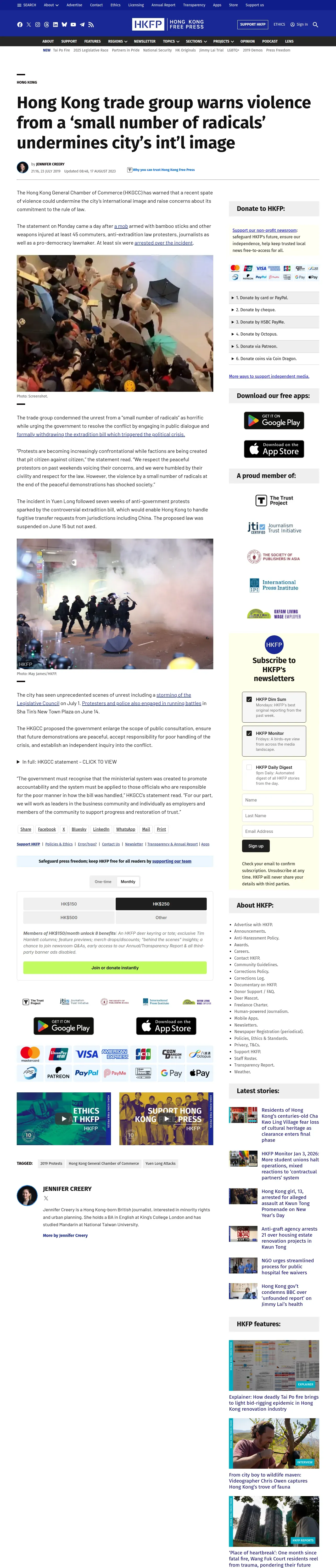 取得元URL: https://hongkongfp.com:443/2019/07/23/hong-kong-trade-group-warns-violence-small-number-radicals-undermines-citys-intl-image/