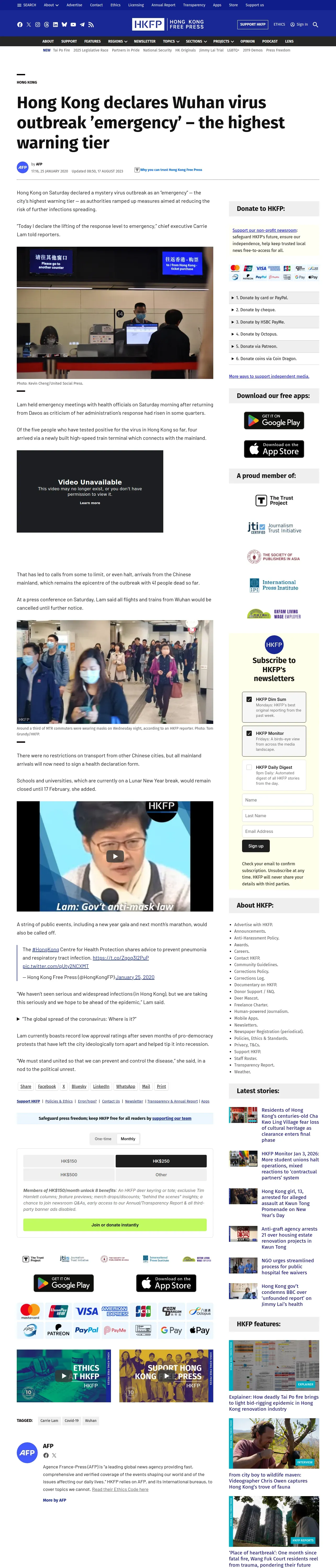 https://hongkongfp.com:443/2020/01/25/breaking-hong-kong-declares-wuhan-virus-outbreak-emergency-highest-warning-tier/