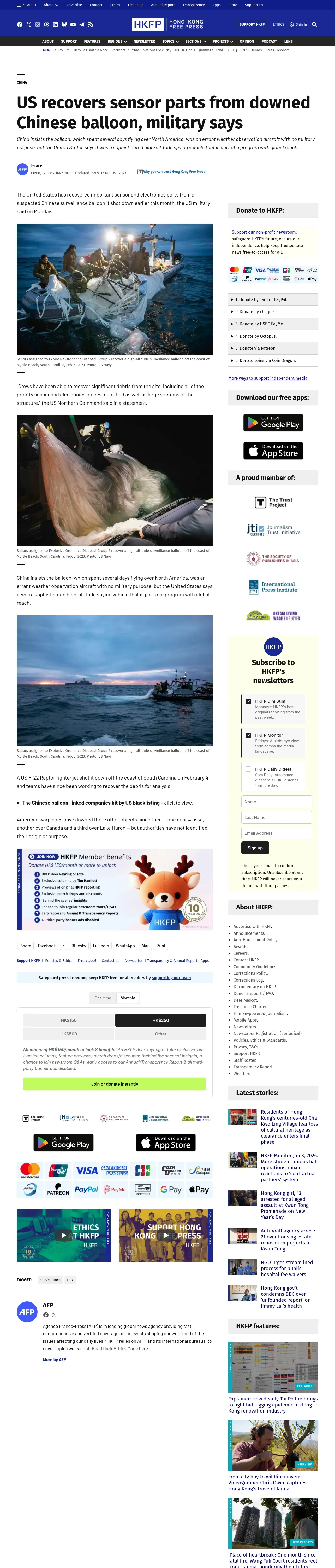 https://hongkongfp.com:443/2023/02/14/us-recovers-sensor-parts-from-downed-chinese-balloon-military-says/