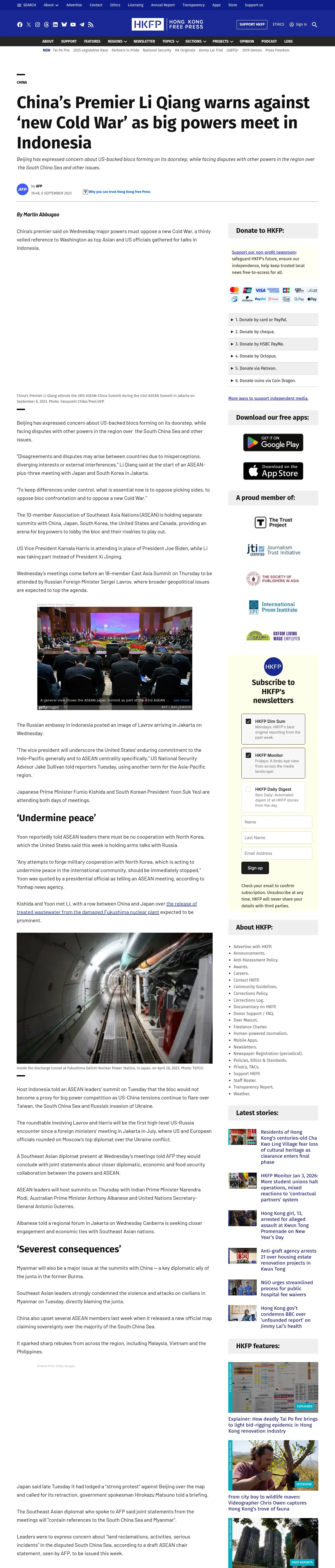 https://hongkongfp.com:443/2023/09/06/chinas-premier-li-qiang-warns-against-new-cold-war-as-big-powers-meet-in-indonesia/